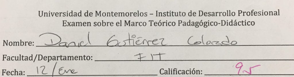 Evidencia del examen rendido. Calificación: 9.5